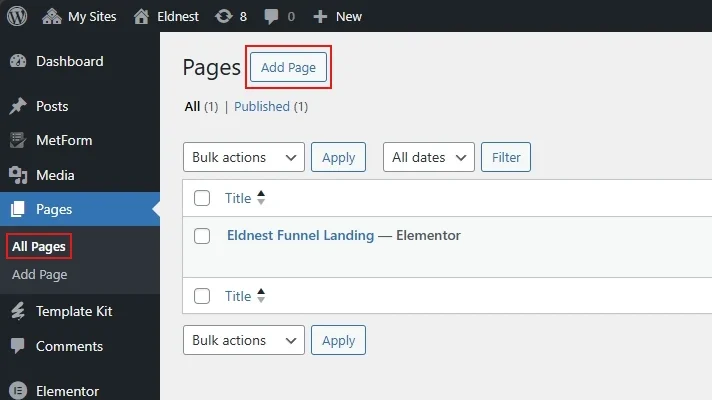 • In the WordPress dashboard, go to Pages > Add New Page