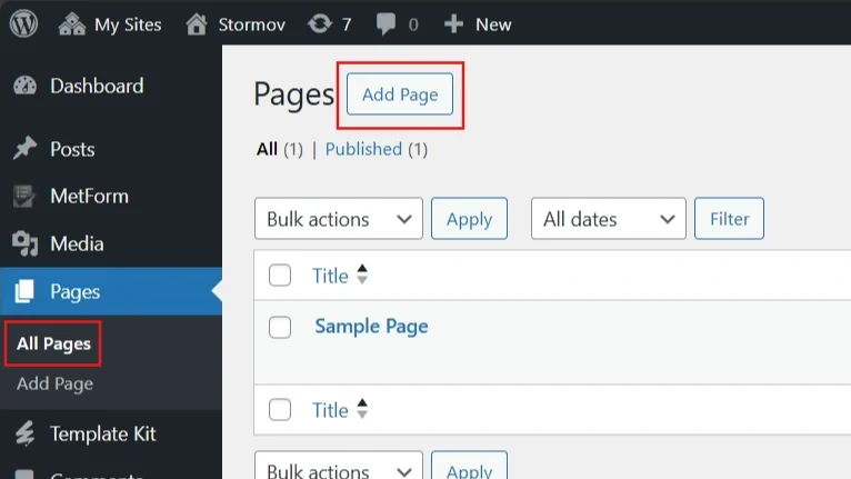 • In the WordPress dashboard, go to Pages > Add New Page
