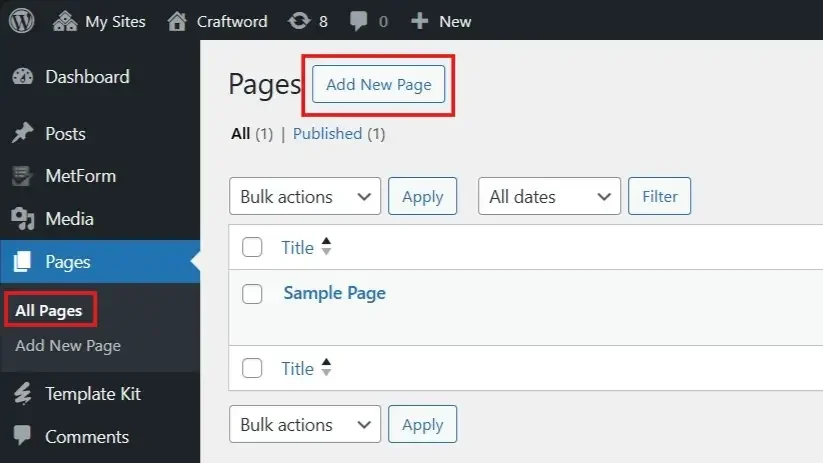 Pages>Add New PagePublishbutton to save your new pageStep 3: Import the Template into the Home page