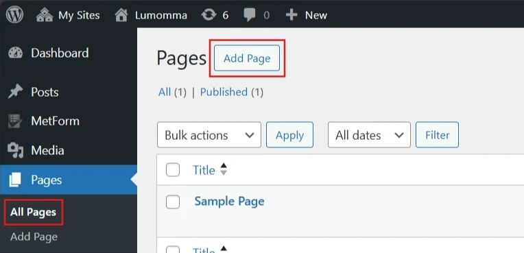 Pages>Add New PagePublishbutton to save your new pageStep 3: Import the Template into the Home page