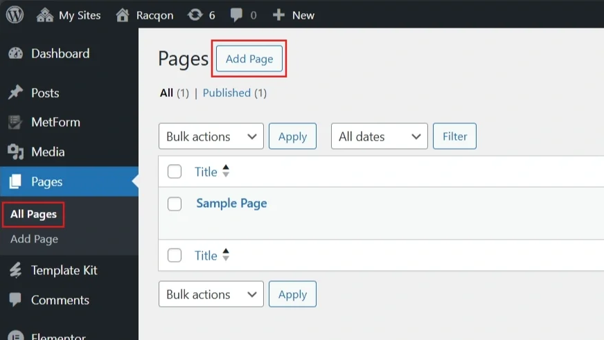 Pages>Add New PagePublishbutton to save your new pageStep 3: Import the Template into the Home page