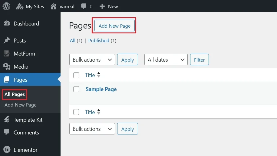 Pages>Add New PagePublishbutton to save your new pageStep 3: Import the Template into the Home page